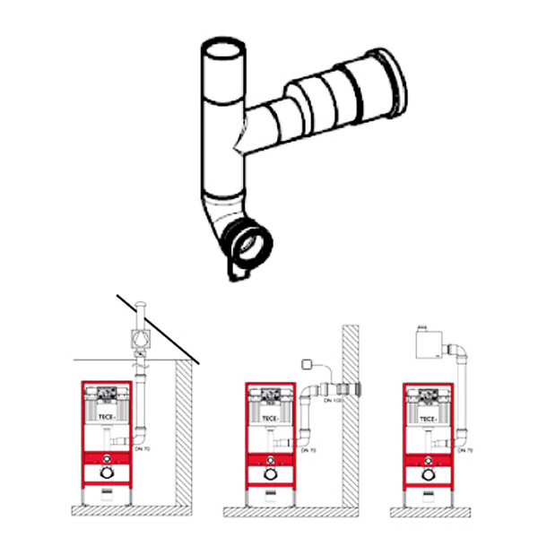 Зливний патрубок Tece TECEprofil з відведенням для підключення до вентиляції DN 70 відведення вправо 90 ° 9820078