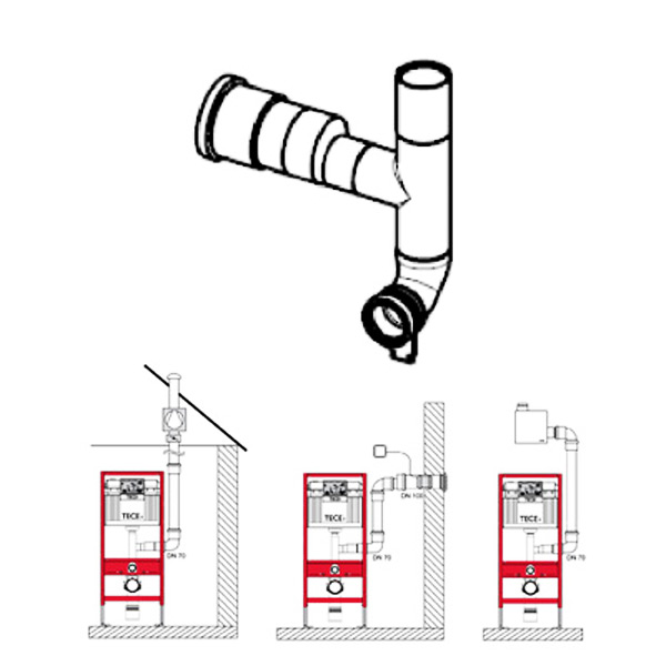 Зливний патрубок Tece TECEprofil з відведенням для підключення до вентиляції DN 70 відведення вліво 90 ° 9820126
