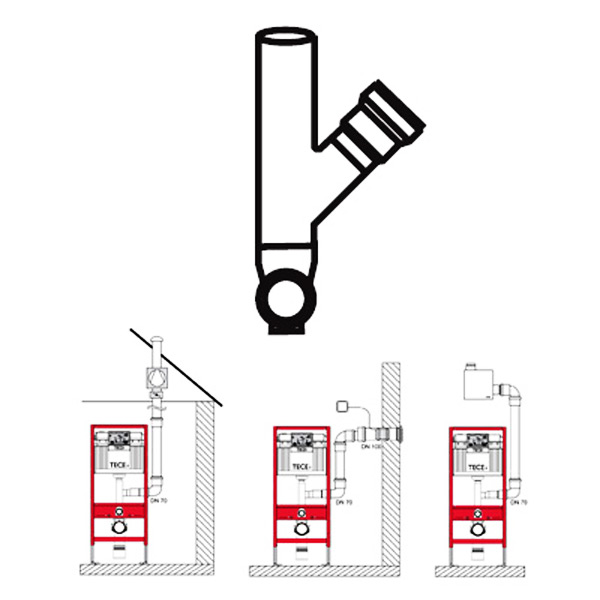 Зливний патрубок Tece TECEprofil з відведенням для підключення до вентиляції DN 70 відведення вправо 45 ° 9820127