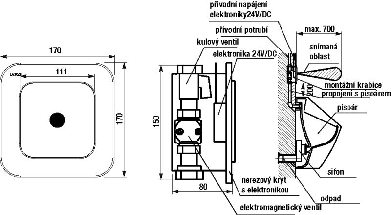 1) Зливний пристрій д я пісуарів Jika Golem інфрачервоне