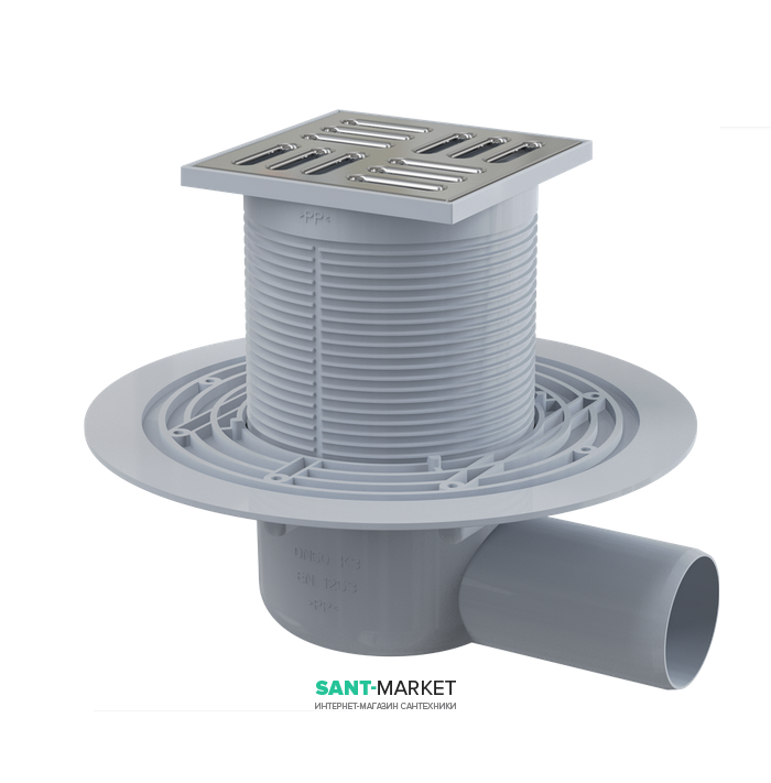 Зливний трап AlcaPlast 105 × 105 мм з гратами бічний стік