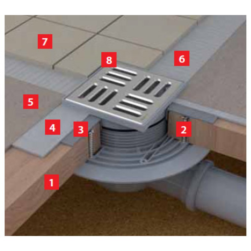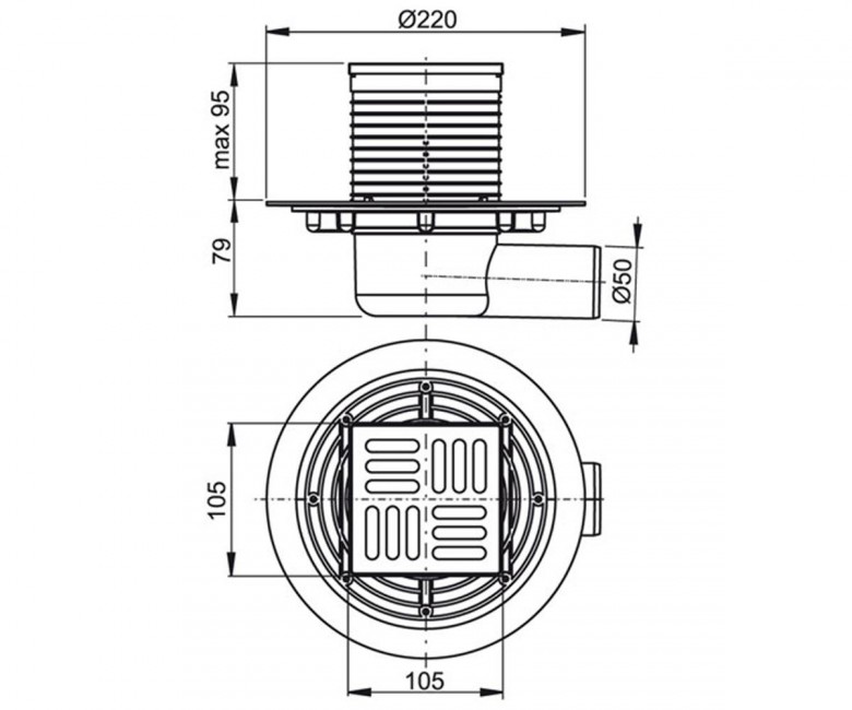 - Горловина зливного трапа 105 × 105 мм