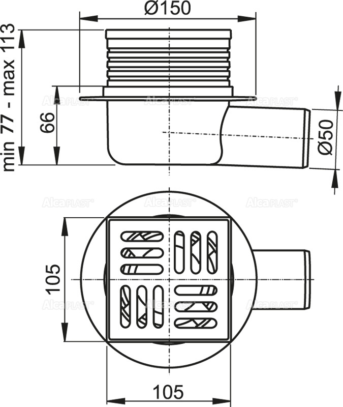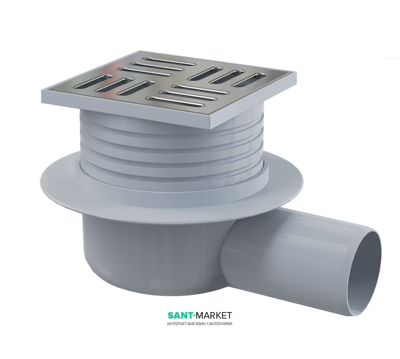 Зливний трап AlcaPlast 105 × 105 мм з гратами бічний стік