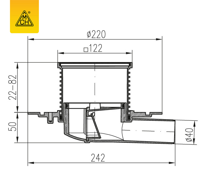 Трап для балконів і терас MCH є зручним засобом для відводу дощової і технічної води з поверхні, стійкий до погодних умов і витримує температуру до 90 ° C. Можна використовувати з будь-яким типом гідроізоляції - рідкої аборулонної.