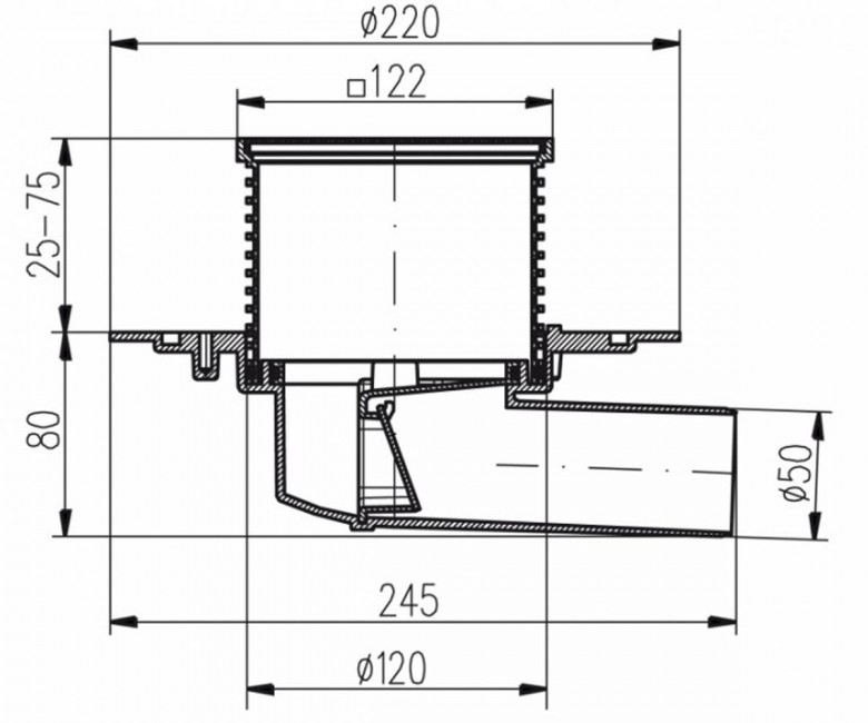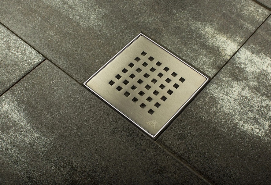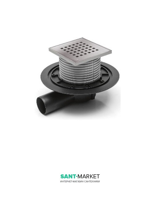 Двокорпусний трап з дизайнерської гратами Квадрати. Strong> Спеціальний фартух допоможе зміцнити гідроізоляційний шар на стику трапа з бетонною стяжкою. Можливість регулювання висоти монтажу +/- 54 мм, а також збільшення монтажкой висотизавдяки використанню вставного елемента. Решітка виготовлена з шліфованої нержавіючої сталі товщиною 5 мм, завдяки чому трап має очени привабливий зовнішній вигляд і тривалий термін служби.
