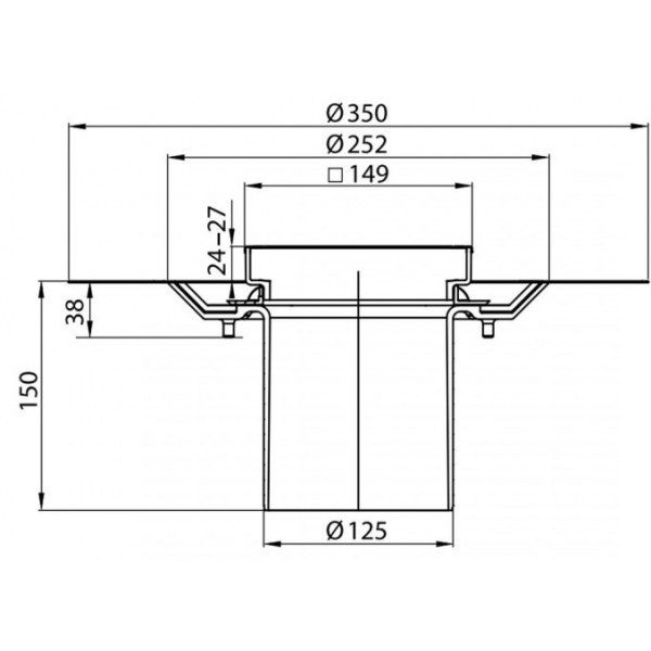 1) Зливний трап для душу ACO ShowerPoint верхня частина 149х149 з фланцем пластик