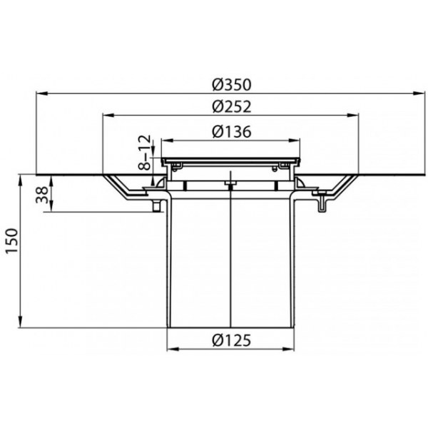 1) Зливний трап для душу ACO ShowerPoint верхня частина d136 мм з фланцем для круглої решітки пластик