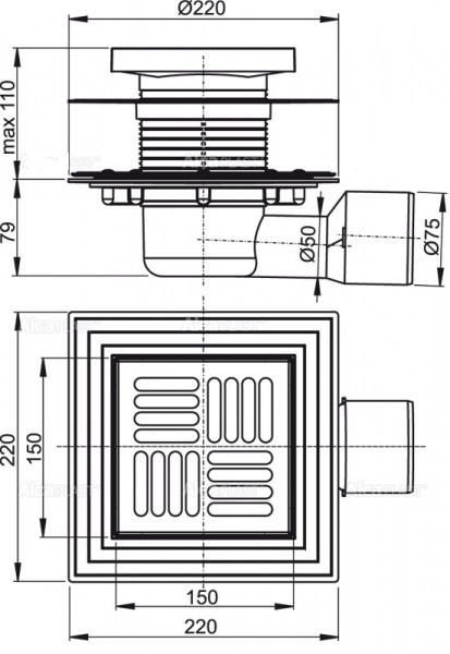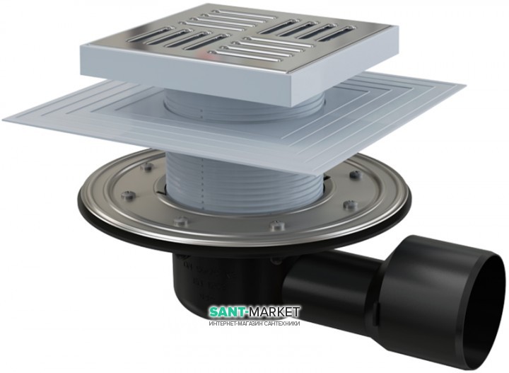 Зливний трап для душу AlcaPlast комбінований затвор бічній випуск 150х150 APV3444
