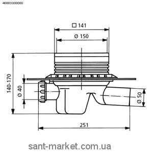 Зливний трап для душу SANIT мокрий затвор бічній випуск 150х150 40.003.00.0000