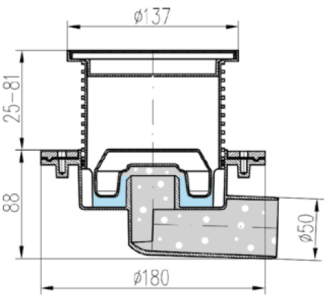 Двокорпусний трап MCH з сухим сифоном Neptun, горизонтальний випуск DN50, нержавіюча решітка 150х150 мм з рамою. Двокорпусний трап з сухим сифоном Neptun, не пропускає каналізаційні запахи в приміщення навіть після висихання води в сифоні. Встановлюється в душових, санвузлах і котелень. Зручний для застосування в санвузлах, які рідко використовуються. З вертикальним підключенням і фланцем для гідроізоляції. Має компактні монтажні розміри з можливістю регулювання висоти монтажу +/- 53 мм. Решітка виготовлена з полірованої нержавіючої сталітовщиною 1,5 мм, завдяки чому трап має привабливий зовнішній вигляд і тривалий термін служби. Внутрішня разуклонку решітки підвищує пропускну здатність трапа і прискорює збір води з поверхні підлоги.