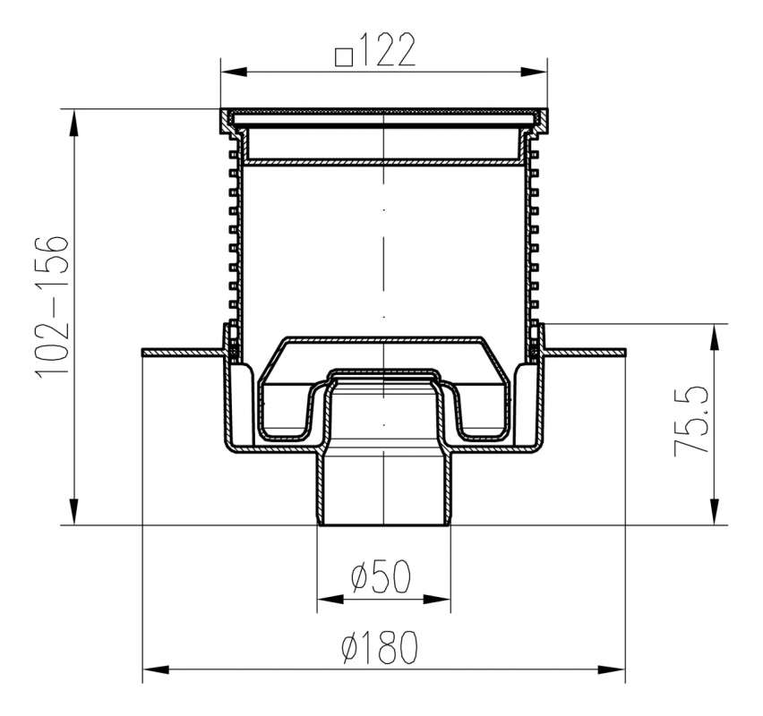 Двокорпусний трап MCH з сухим сифоном Neptun, вертикальний випуск DN50, нержавіюча решітка 122х122 мм з рамою. Двокорпусний трап з сухим сифоном Neptun, не пропускає каналізаційні запахи в приміщення навіть після висихання води в сифоні. Встановлюється в душових, санвузлах і котелень. Зручний для застосування в санвузлах, які рідко використовуються. З вертикальним підключенням і фланцем для гідроізоляції. Має компактні монтажні розміри з можливістю регулювання висоти монтажу +/- 53 мм. Решітка виготовлена з полірованої нержавіючої сталітовщиною 1,5 мм, завдяки чому трап має привабливий зовнішній вигляд і тривалий термін служби. Внутрішня разуклонку решітки підвищує пропускну здатність трапа і прискорює збір води з поверхні підлоги.