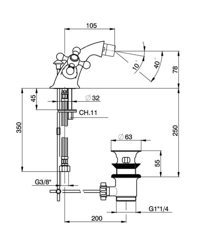 Змішувач для біде Devit Charlestone двухвентильний хром з донним клапаном