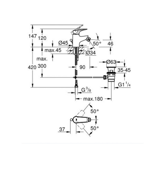 Змішувач для біде Grohe BauFlow одноважільний з донним клапаном хром