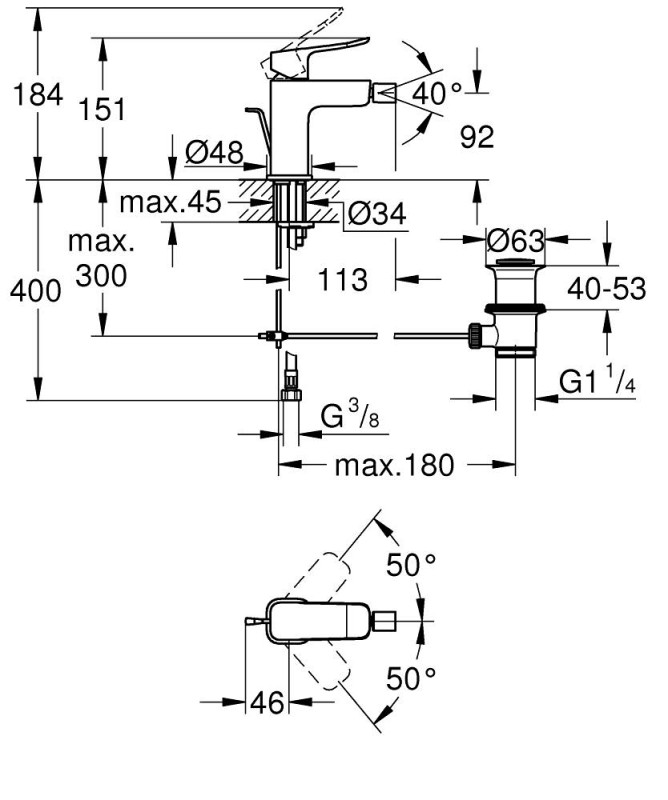 Змішувач для біде Grohe Dice одноважільний з донним клапаном хром 1018770000