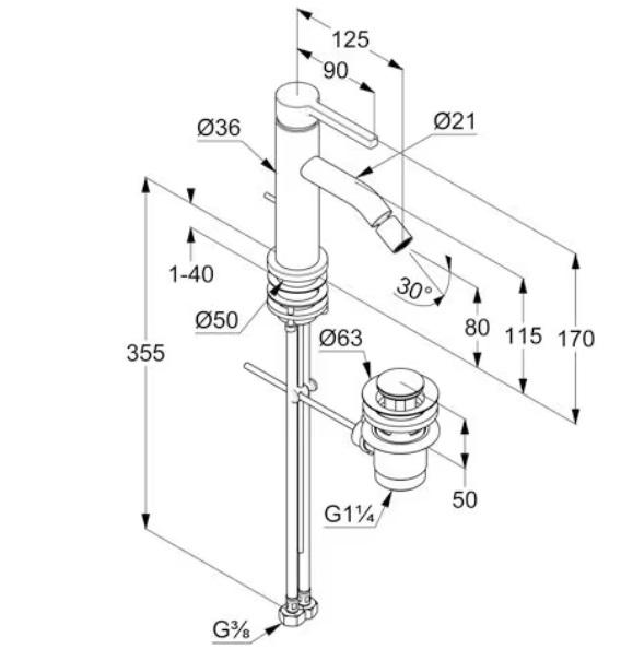 Змішувач для біде Kludi Nova Fonte з донним клапаном чорний матовий