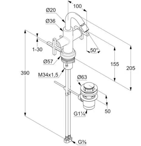 Змішувач для біде Kludi Nova Fonte з донним клапаном хром 203130520