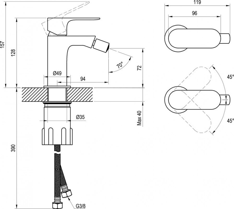 Змішувач для біде Ravak Eleganta одноважільний графіт матовий X070332