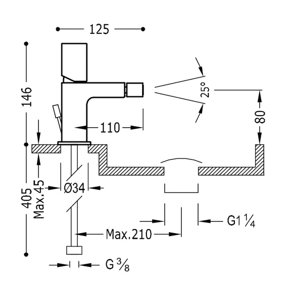 1) Змішувач для біде Tres Loft-Tres з донним клапаном хром