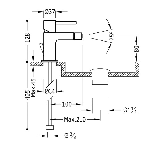 Змішувач для біде Tres Max-Tres одноважільний з донним клапаном хром 06222001D