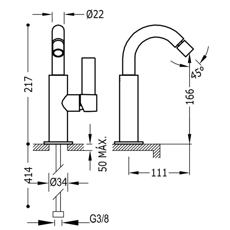Змішувач для біде Tres Project-Tres змішувач з поворотним виливом чорний матовий