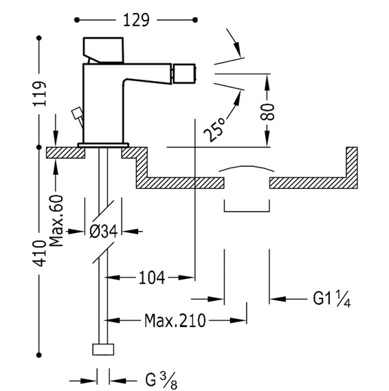 - Довжина виливу: 129 мм