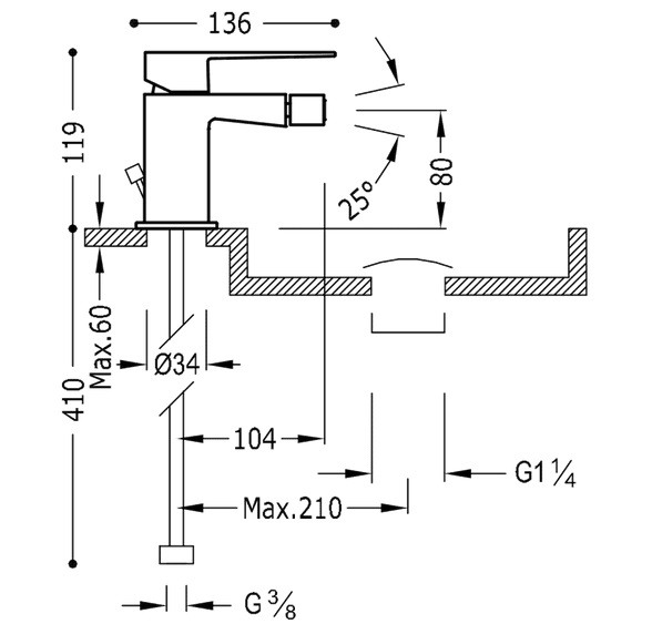 1) Змішувач для біде Tres Slim-Tres змішувач з донним клапаном хром