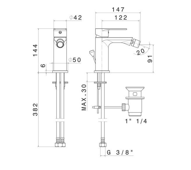 1) Змішувач для біде Vema Timea з донним клапаном чорний матовий