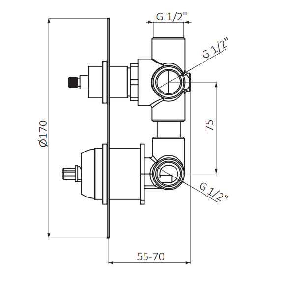 1) Змішувач для душа GRB E-Plus прихованого монтажу термостатичний хром