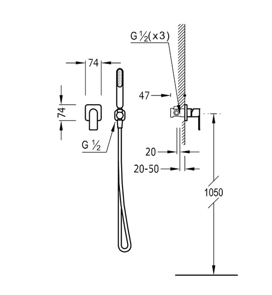 Змішувач для душа Tres Loft-Tres змішувач з ручним душем хром