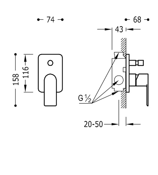 1) Змішувач для душа Tres Loft-Tres вбудовується 1 споживач хром