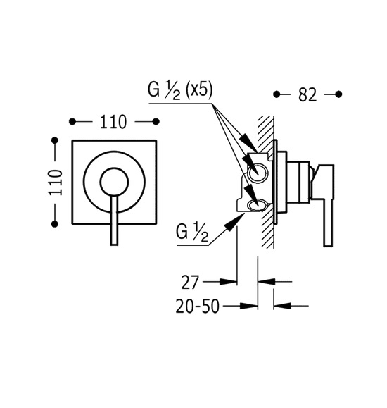 1) Змішувач для душа Tres Max-Tres змішувач вбудовується 1 канал хром