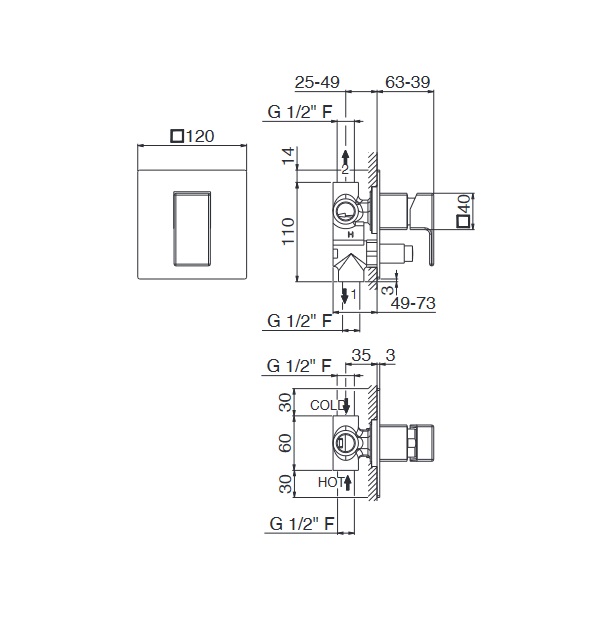 1) Змішувач для душа Vema Lys прихованого монтажу змішувач хром