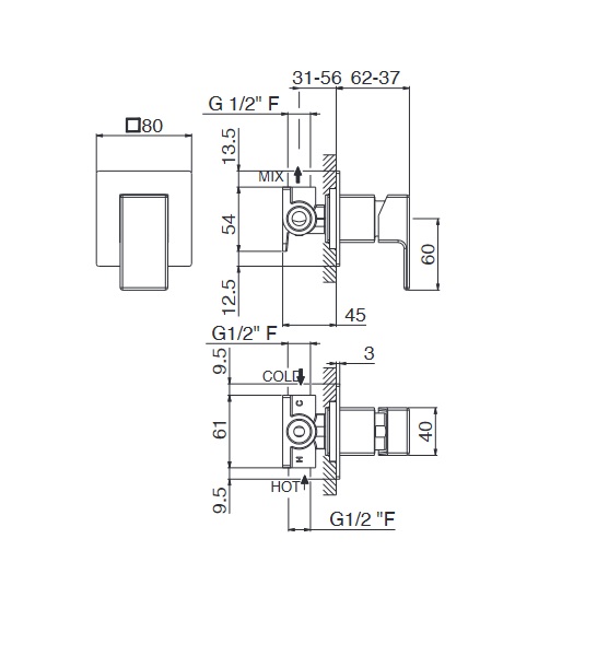 1) Змішувач для душа Vema Lys прихованого монтажу змішувач хром