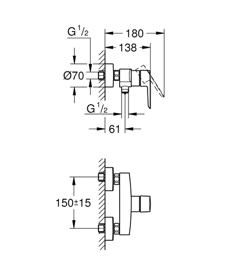 - 1/2" вихід для душу знизу з вбудованим зворотним клапаном