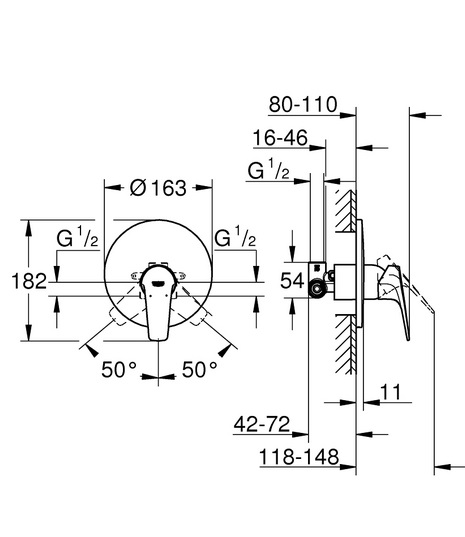 Змішувач для душу Grohe Start Flow вбудований одноважільний хром 29116000