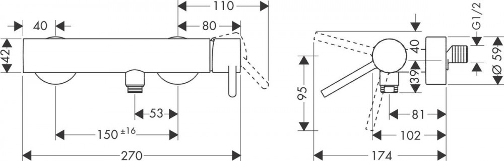 - обсяг витрати води ручного душу при 3 барах: 16 л/хв