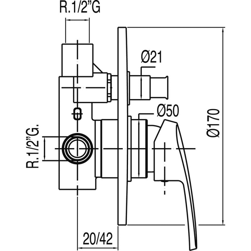 Змішувач для душу одноважільний Tres Eco-tres вбудовується на 2 споживача хром