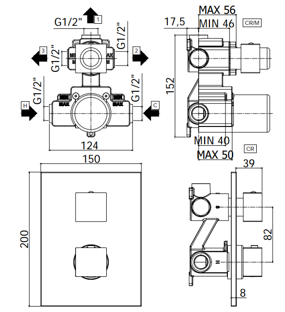 - Комплектація: настінна панель 150x200 мм, 1/2 "G з'єднання