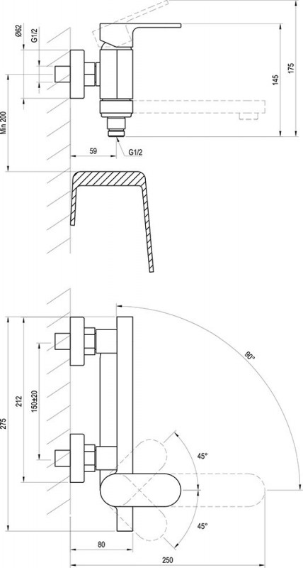 Змішувач для ванної Ravak Chrome настінний одноважільний чорний X070431