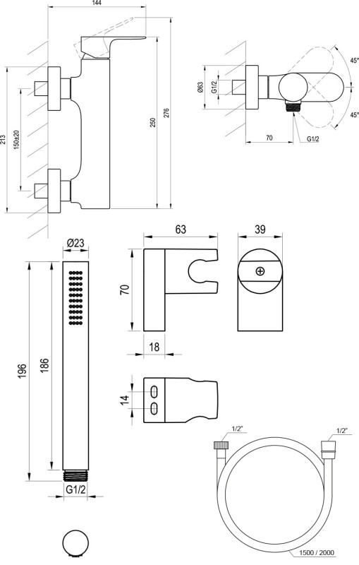 Довжина душового шланга: