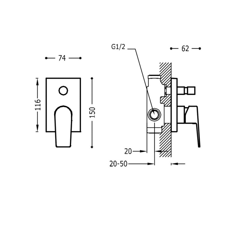 1) Змішувач для душа Tres Project colors змішувач вбудовується на 2 споживача чорний матовий