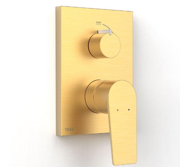Змішувач для душу Tres Project вбудований одноважільний 2 споживача матове золото 21128110OM