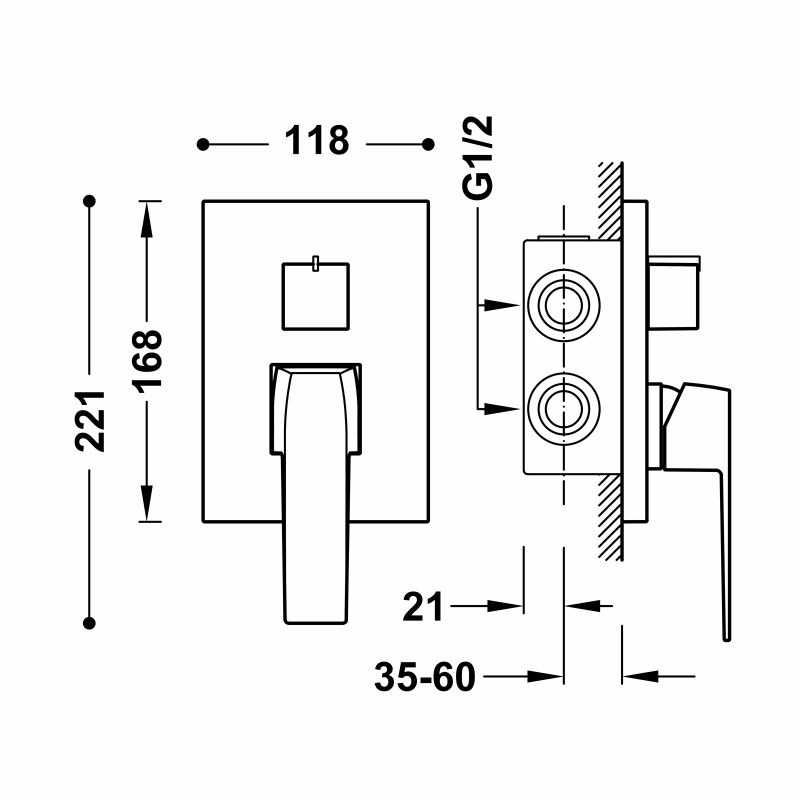 Змішувач для душу Tres Slim Exclusive (2 канали) вбудований одноважільний чорний матовий