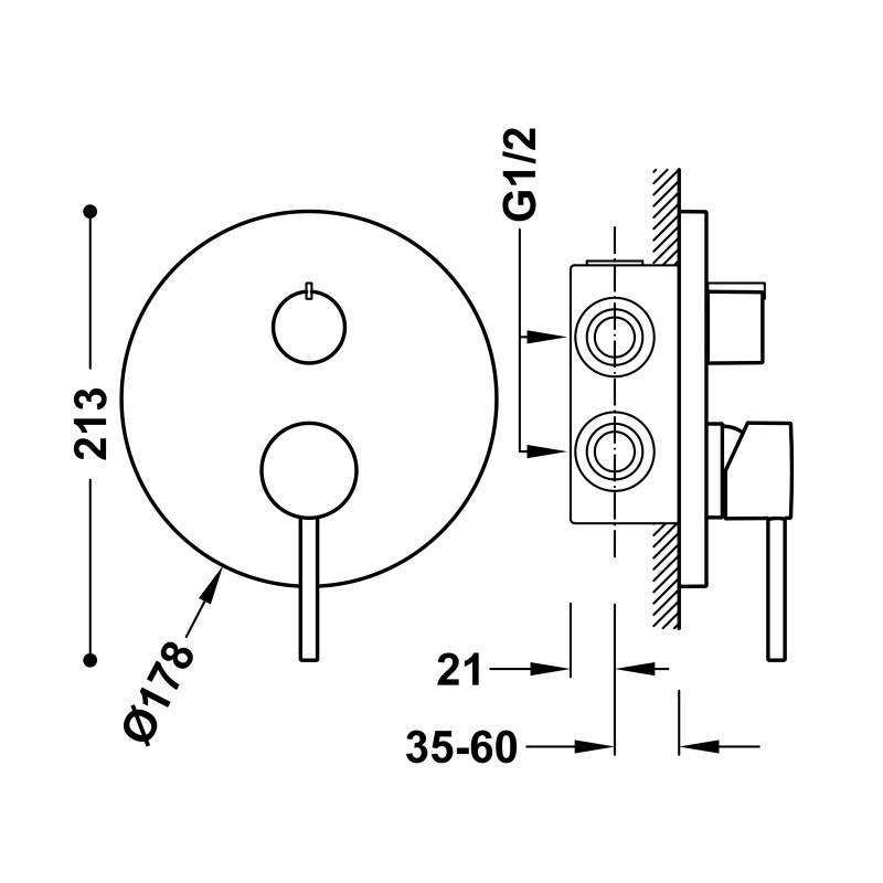 1) Змішувач для душу Tres Study Exclusive (2 канали) вбудовується одноважільний сталь