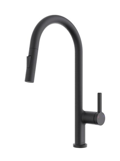 Змішувач для кухні Aqua Rodos Bari одноважільний з висувною лійкою чорний матовий