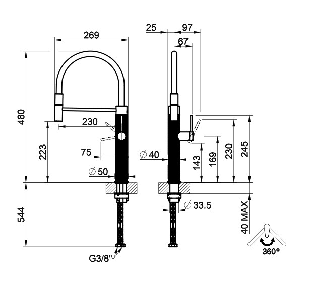 кухонний міксер Gessi Fllas з ковзаючим поликом матового чорного