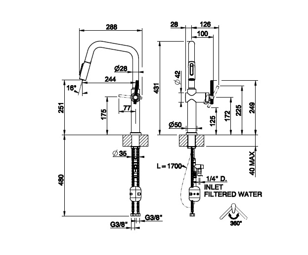 змішувач Gessi Habito Kitchen для фільтра з ковзаючим поливою може нержавіюча сталь