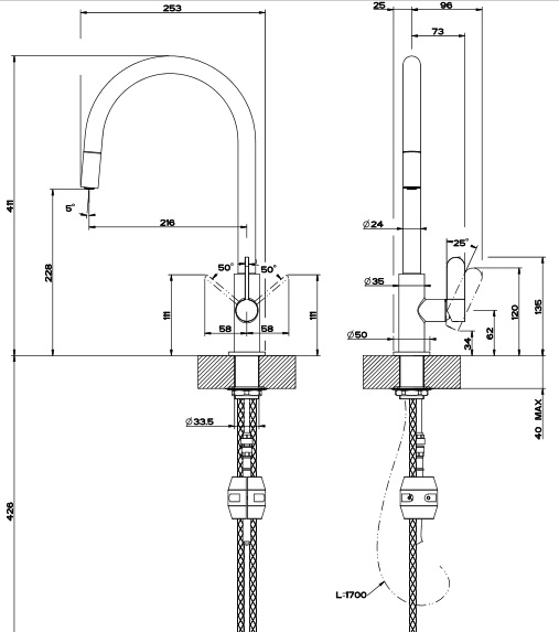 1) Змішувач для кухні Gessi Helium з висувною лійкою нержавіюча сталь