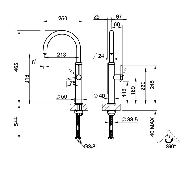 кухонний змішувач gessi meccanica одиночний матовий чорний
