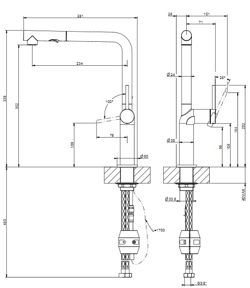 1) Змішувач для кухні Gessi Stelo з висувною лійкою матовий чорний